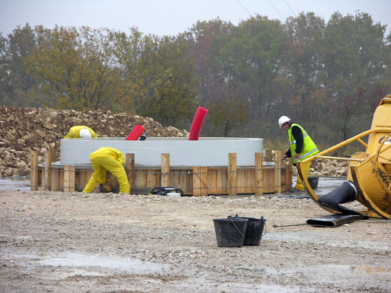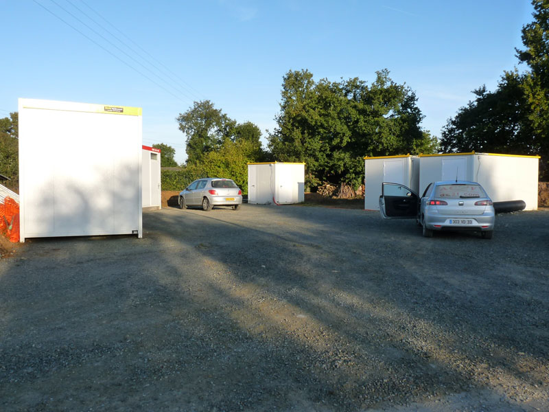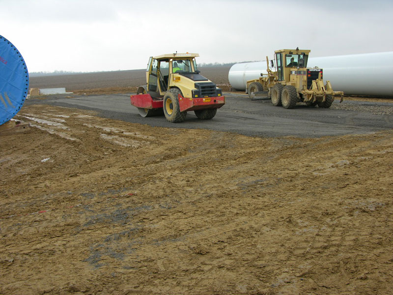 Travaux de préparation des pistes et des accès au chantier, des plateformes (futures zones de grutage), des zones de parking, installation de la base vie, du poste de livraison, des socles des éoliennes…