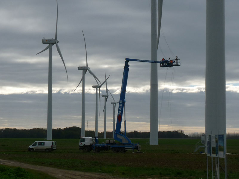 Nous sommes présents depuis bientôt 4 ans sur des chantiers de construction d’éoliennes pour le constructeur espagnol GAMESA EOLICA.